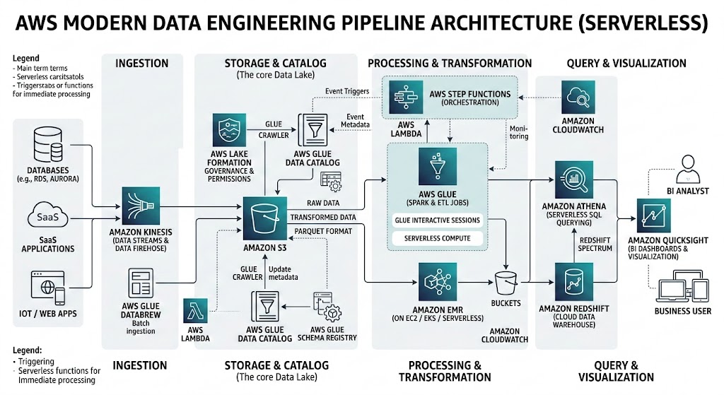 - Designing automated data ingestion workflows using Kinesis and Lambda.