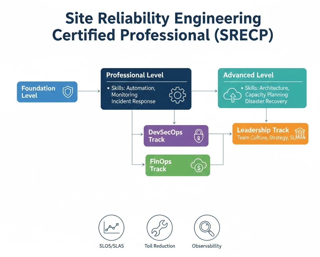 Modern enterprises depend on distributed architectures that grow more complex every day. The Site Reliability Engineering Certified Professional (SRECP) provides long-term career security because it focuses on core principles rather than fleeting tool trends. Professionals who hold this credential demonstrate a mastery of observability and automation that directly reduces business risk. Investing your time in this certification positions you as a critical asset capable of steering organizations through the challenges of cloud-native scaling.